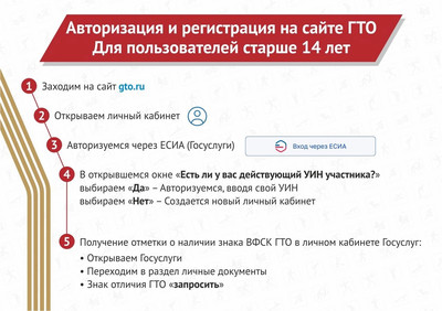 Авторизация и регистрация на сайте ГТО для пользователей старше 14 лет !