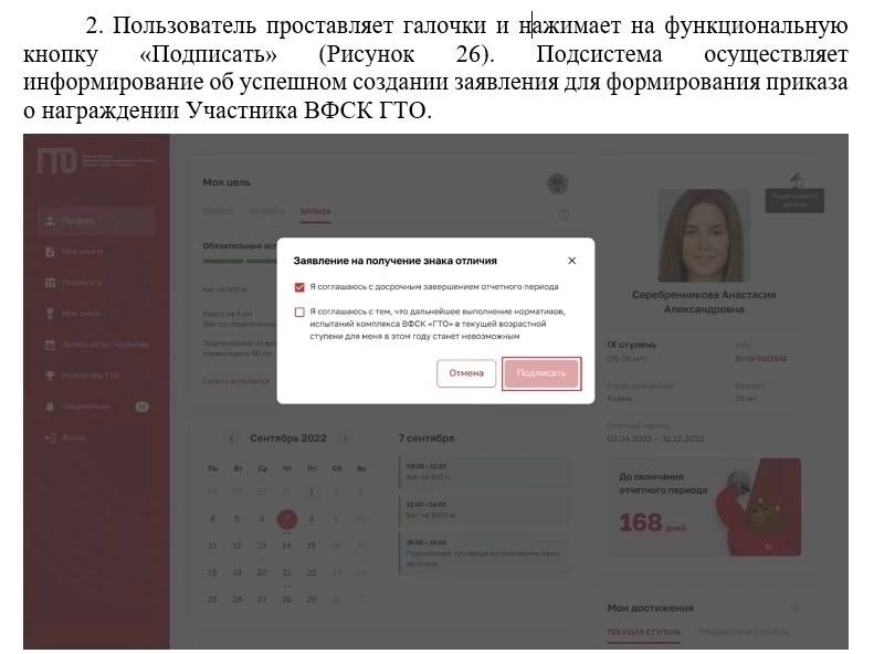 Досрочный расчет и выдача знака участнику ВФСК ГТО по его инициативе.